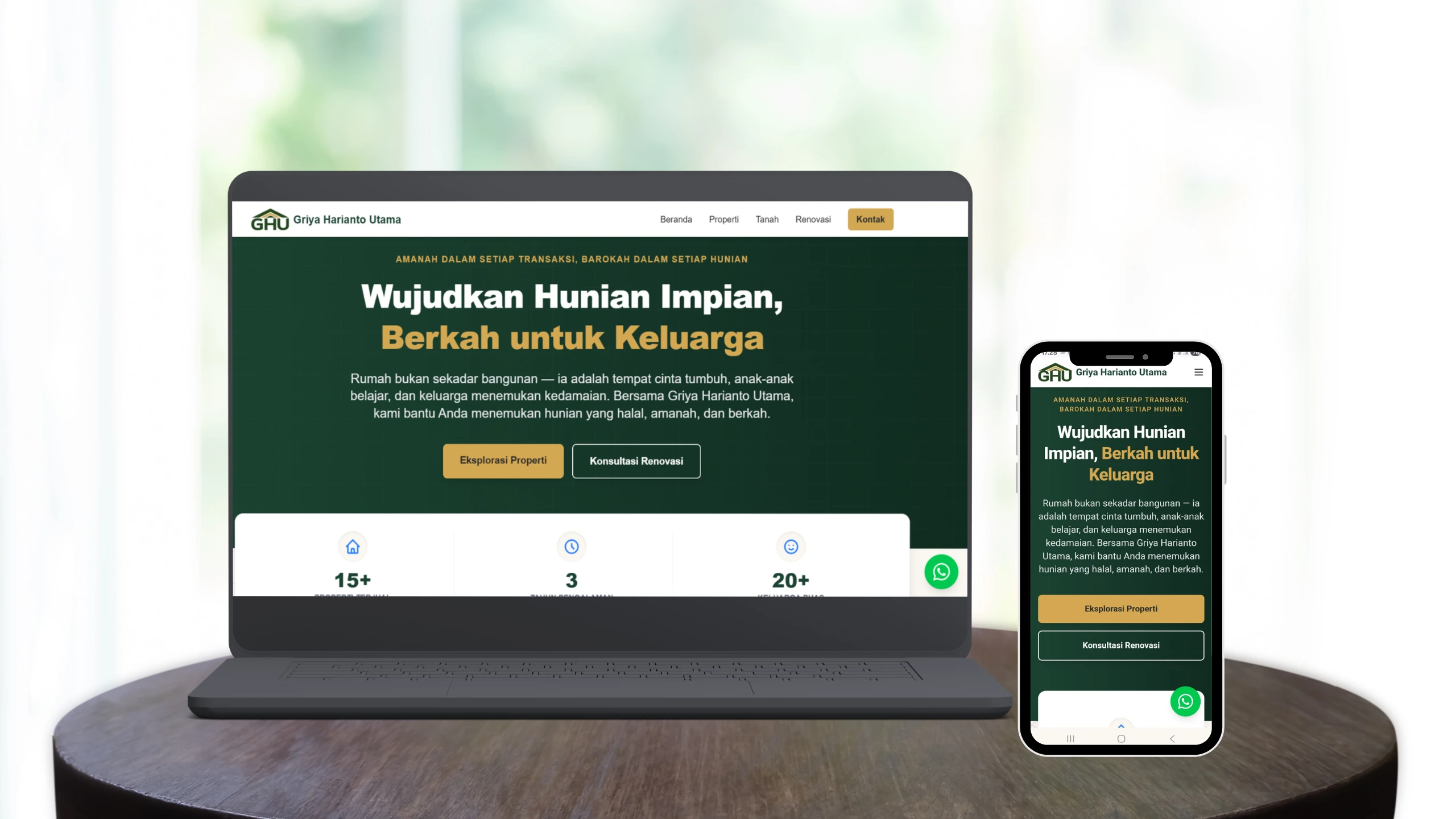 Landing page eksklusif untuk pemasaran properti residensial premium dengan galeri interaktif, tabel spesifikasi teknis, dan integrasi WhatsApp untuk konversi cepat.